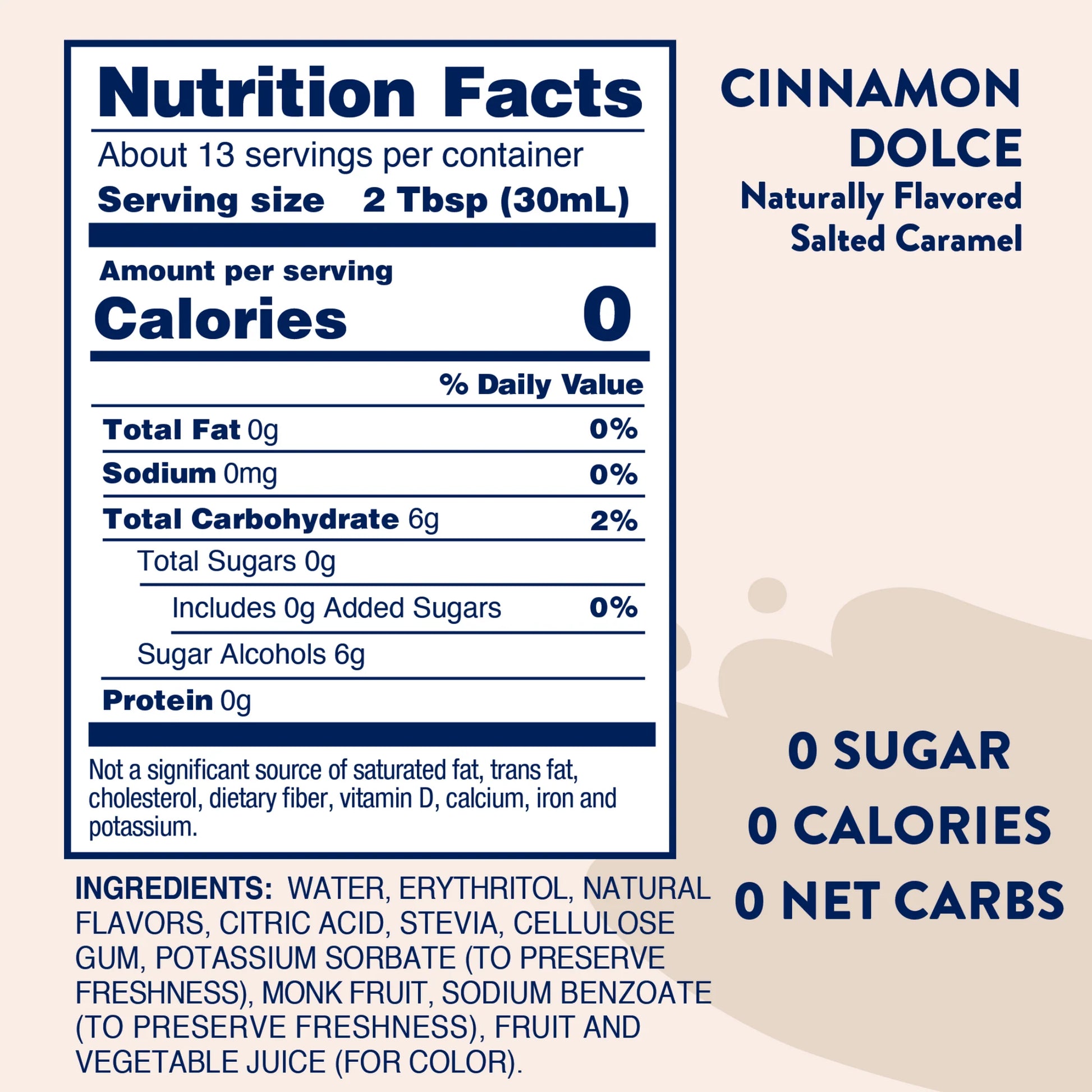 A natural twist on one of our best-selling fall flavors! Our NEW, Naturally Sweetened Cinnamon Dolce Syrup provides all the flavor of our classic syrup with no artificial sweeteners, flavors, or colors. Naturally sweetened with stevia, monk fruit, and erythritol. More natural, more flavor, 0 calories.