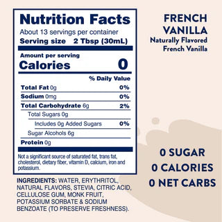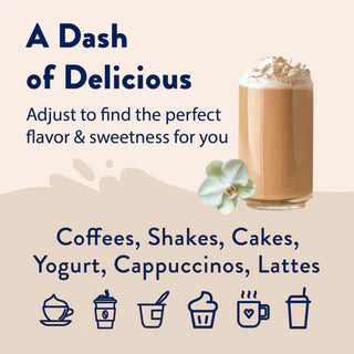 Flavor Notes: Sweet and indulgent french vanilla flavor. Add guilt-free flavor to coffees, lattes, tea, protein shakes, smoothies, baking, oatmeal or just about anything.