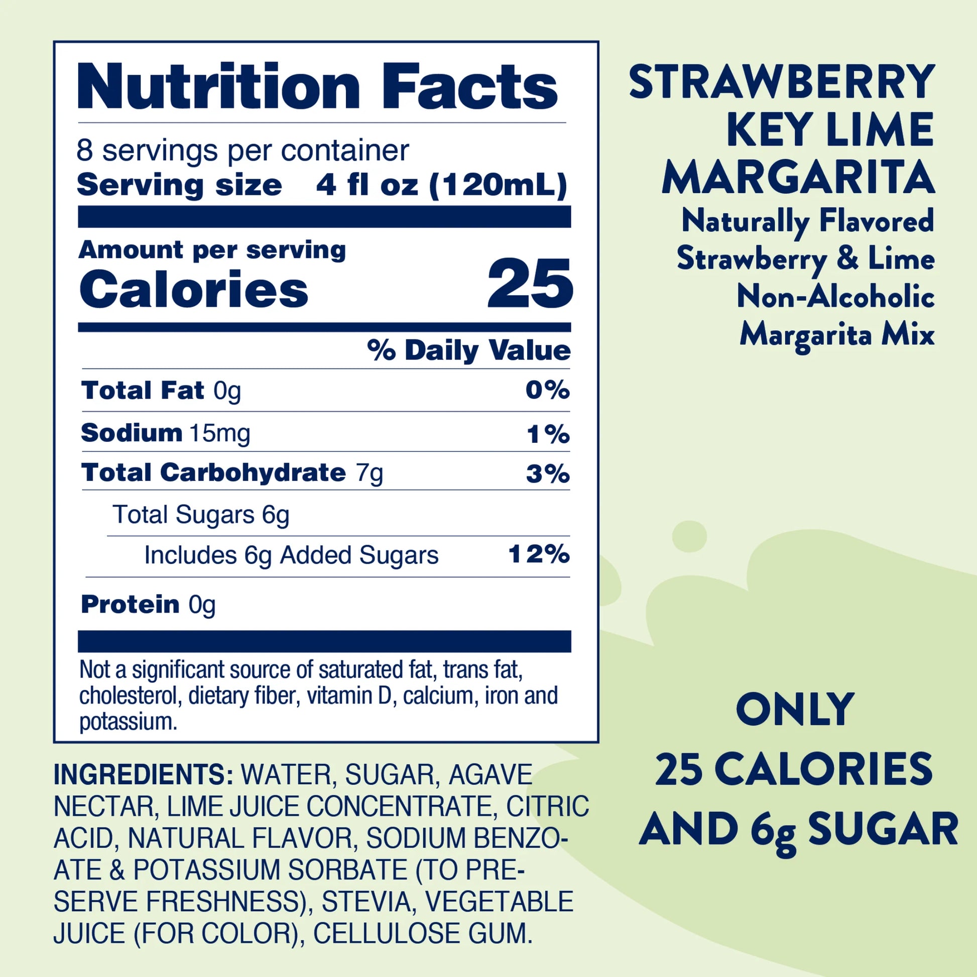 Naturally sweetened, non-alcoholic strawberry key lime margarita mix. Our unique margarita flavor combination SHINES with this new naturally sweetened mix made with real lime and agave nectar.