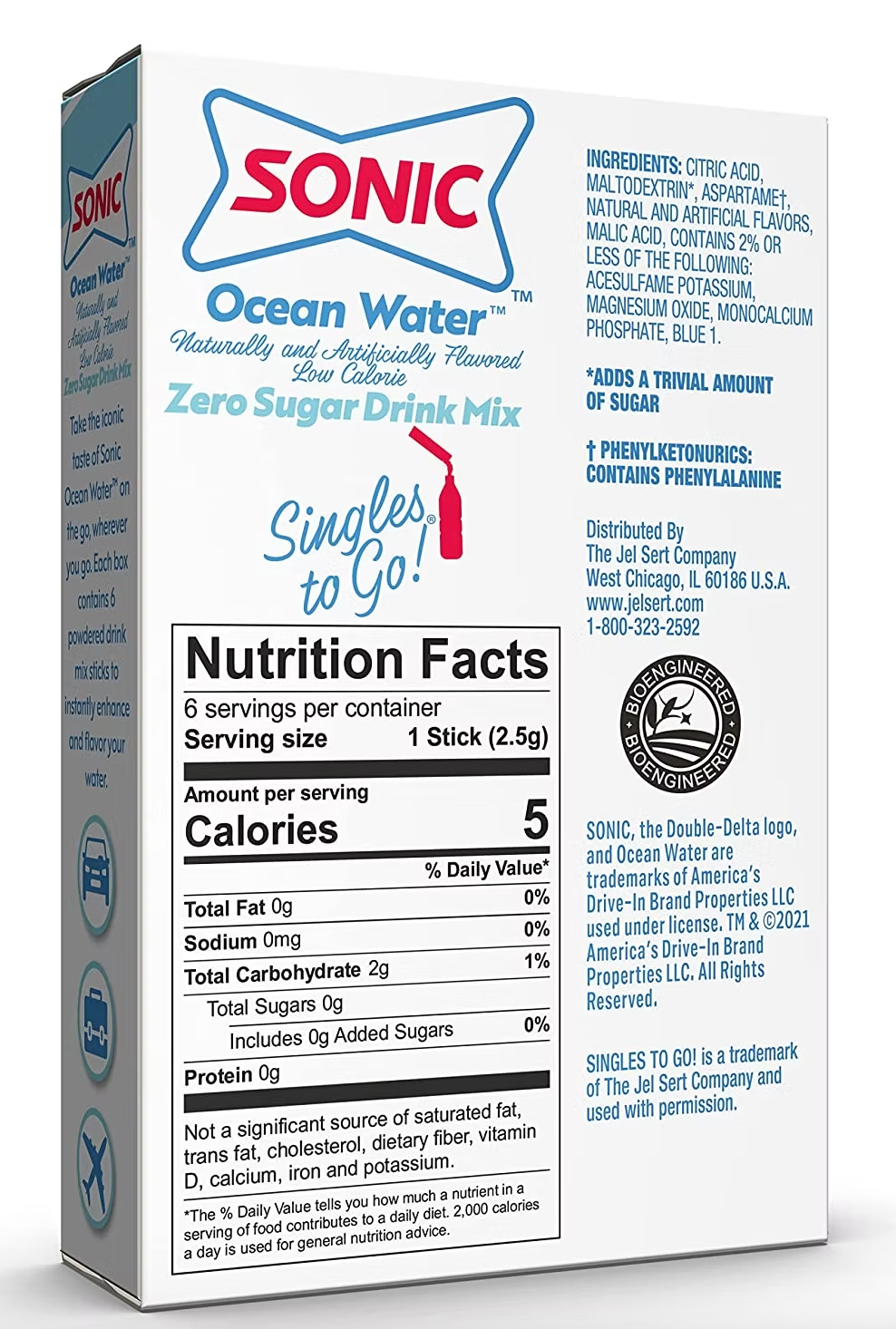 Sonic Singles To Go are a delicious way to keep your family hydrated while enjoying a bold flavor. Each sugar free serving has only 5-10 calories.