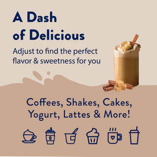 The warm, spicy notes of cinnamon are perfectly balanced by the rich, sweet flavor of brown sugars. When combined, cinnamon and brown sugar create a unique taste that's both sweet and savory. The cinnamon adds an aromatic taste, while the brown sugar contributes a rich, caramel-like sweetness. Together, they create a warm and comforting taste that's perfect to add flavor to coffees, lattes, tea, protein shakes, smoothies, baking, oatmeal or just about anything.