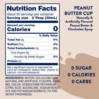 Sweet and silky milk chocolate pairs with creamy, rich peanut butter flavor to create the perfect syrup that tastes indulgent, but is guilt-free. Add guilt-free flavor to coffees, lattes, tea, protein shakes, smoothies, baking, oatmeal, or just about anything.