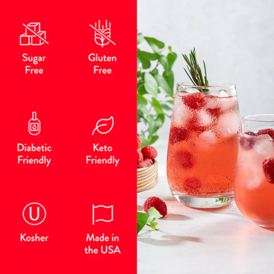 Add the fun and fruity flavor of raspberry to your favorite beverages without the unwanted calories. Add guilt-free flavor to water, iced tea, lemonade, protein shakes, or just about anything.