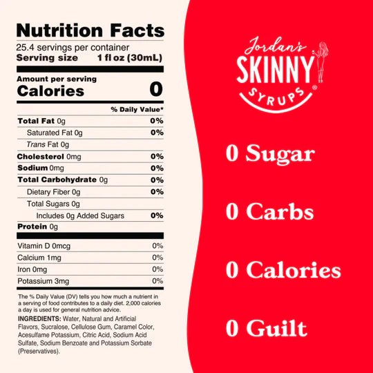 Jordan's Sugar Free Raspberry Syrup - 750ml - BB July 2025