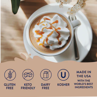 The taste and aroma of this smooth syrup will brighten any drink hot or cold. Gourmet flavored vanilla with a creamy taste of rich caramel blended in your favorite drink will create a sensational taste. Add guilt-free flavor to coffees, lattes, tea, protein shakes, smoothies, baking, oatmeal, or just about anything.