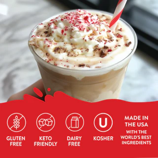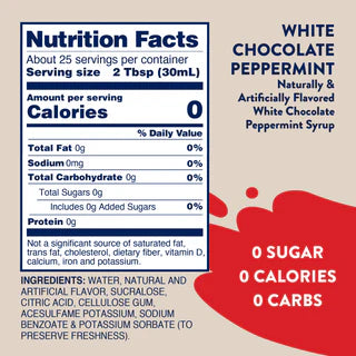Introducing Sugar Free White Chocolate Peppermint Syrup - a delightful blend of holiday magic, child-like joy, and guilt-free indulgence!